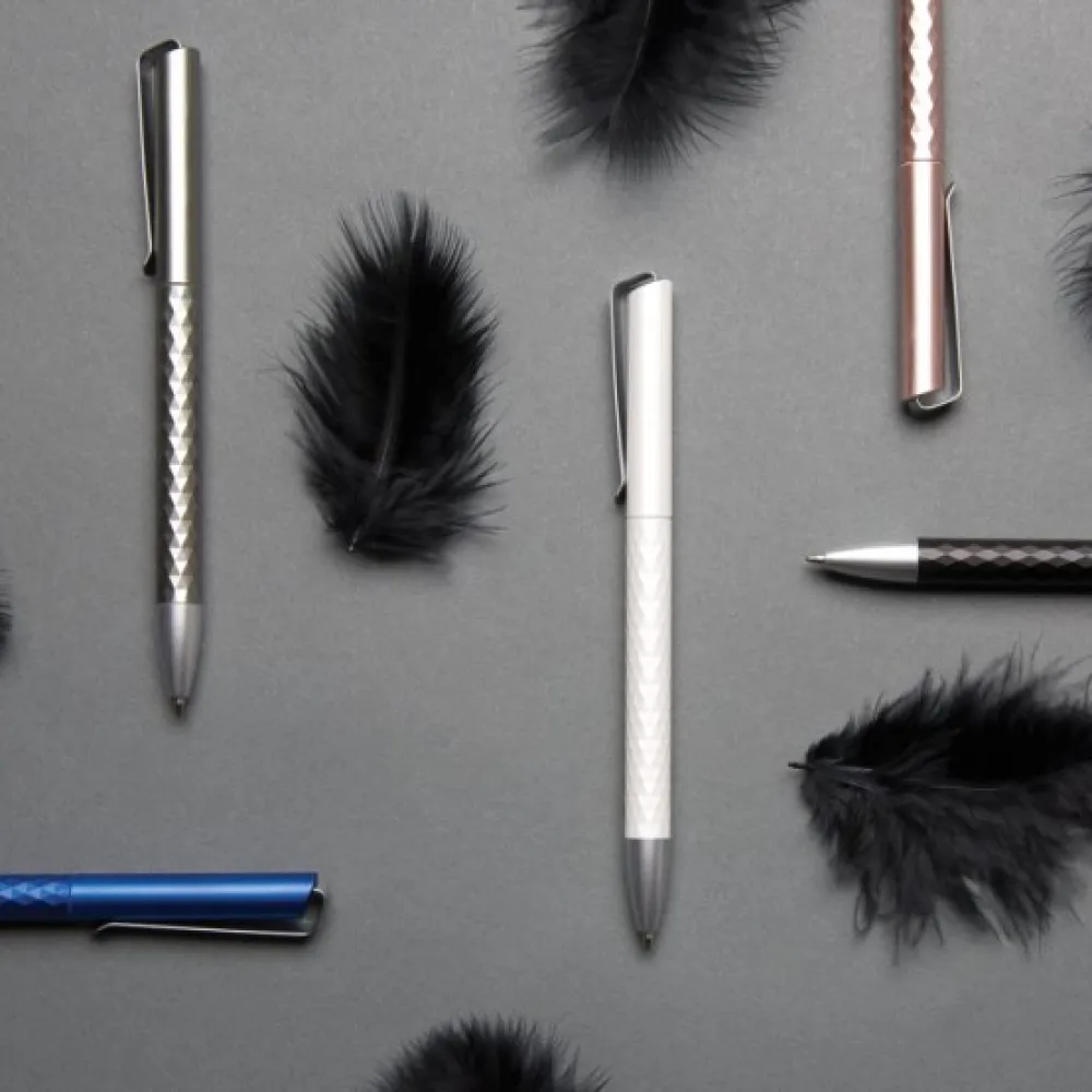 X3.1 RCS certified R-ABS pen is a unique ballpoint pen with metal clip and fascinating diamond pattern. Including ca. 1200m writing length German