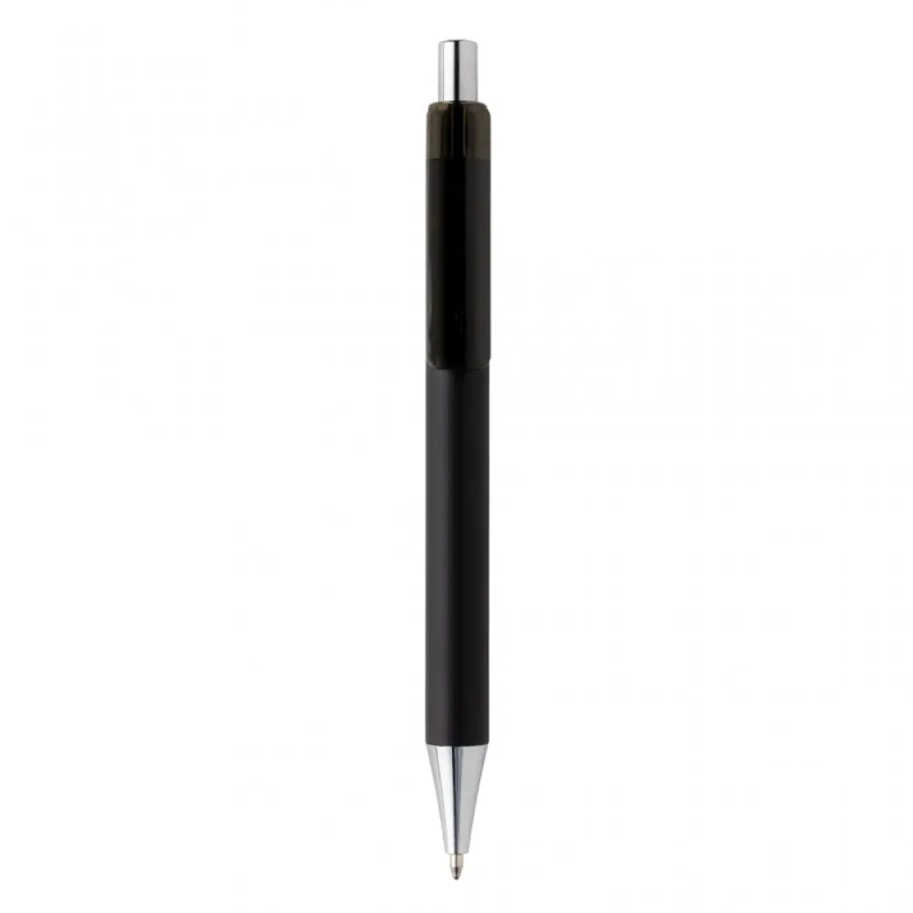 The X8 RCS certified R-ABS smooth touch pen is a new sophisticated member of the X pen family featuring a new look with a chrome tip and plunger accent.