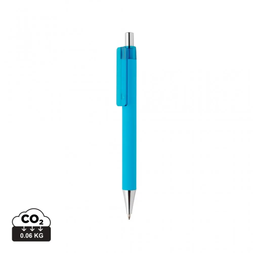 The X8 RCS certified R-ABS smooth touch pen is a new sophisticated member of the X pen family featuring a new look with a chrome tip and plunger accent.