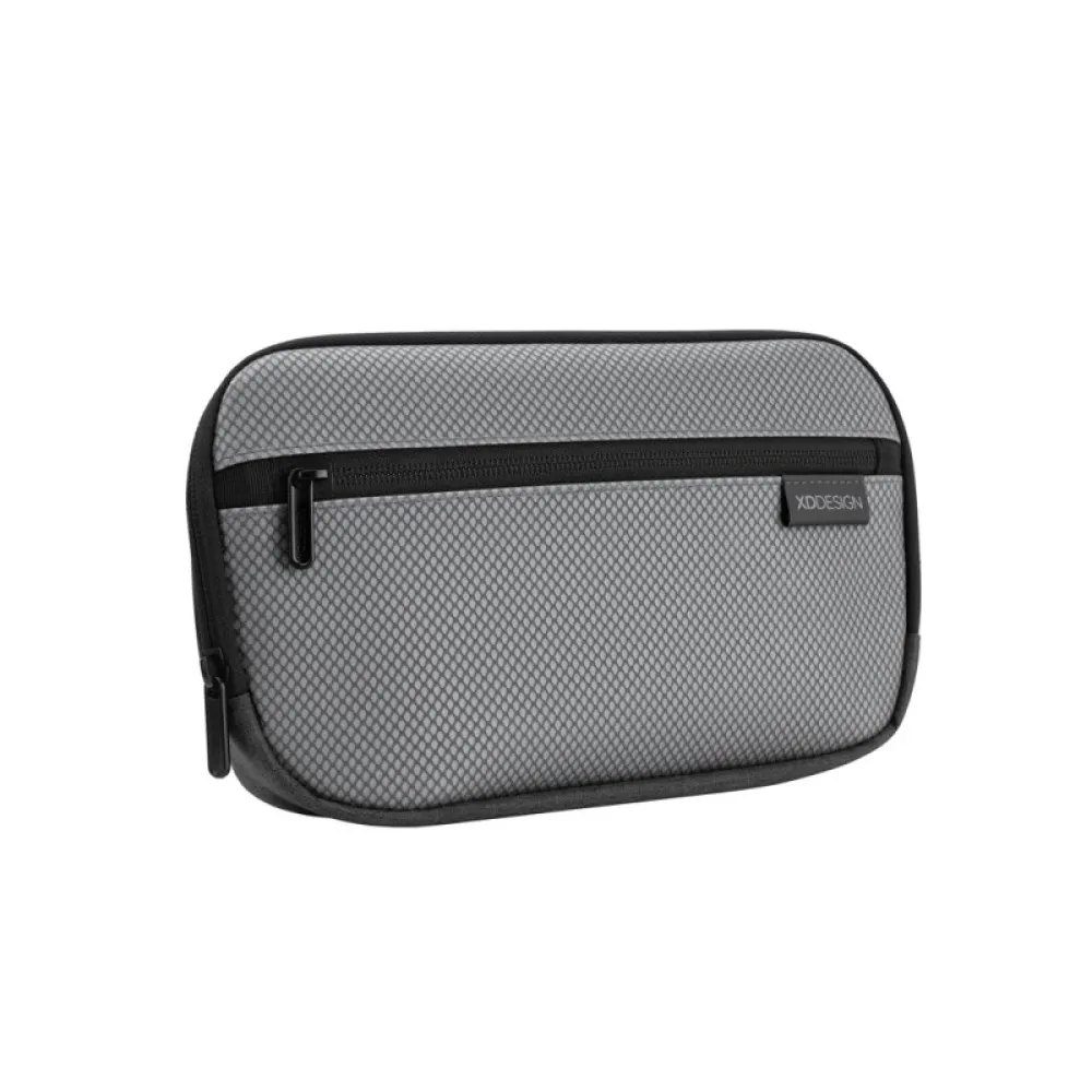 Pouch with an independent wet/dry chamber—ideal for toiletries, yet versatile enough for cables, drives, or daily essentials—and doubling as a standalone pouch whenever needed. Finished with a semi-hard EVA shell and crafted from R-pet fabric with AWARE™ tracer, it maintains a structured, self-standing design. With AWARE™, the use of genuine recycled fabric is guaranteed. 24% recycled content.