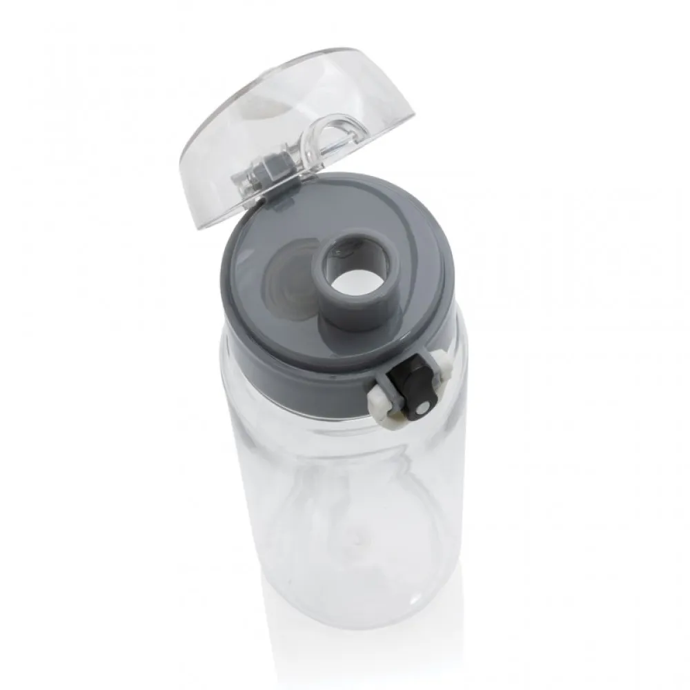 This RCS RPET water bottle is leakproof and features a lockable and one hand operation lid. It also features a handle for easy carrying.